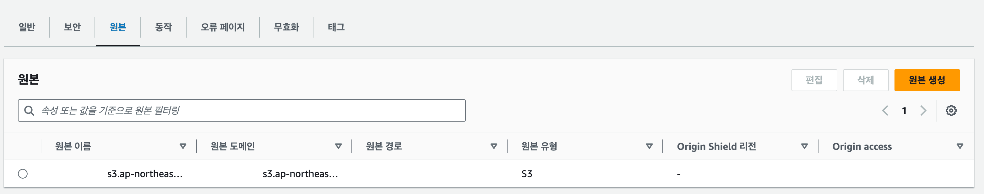 정상적으로 S3 버킷이 CloudFront의 오리진 서버로 추가된 것을 확인할 수 있습니다.