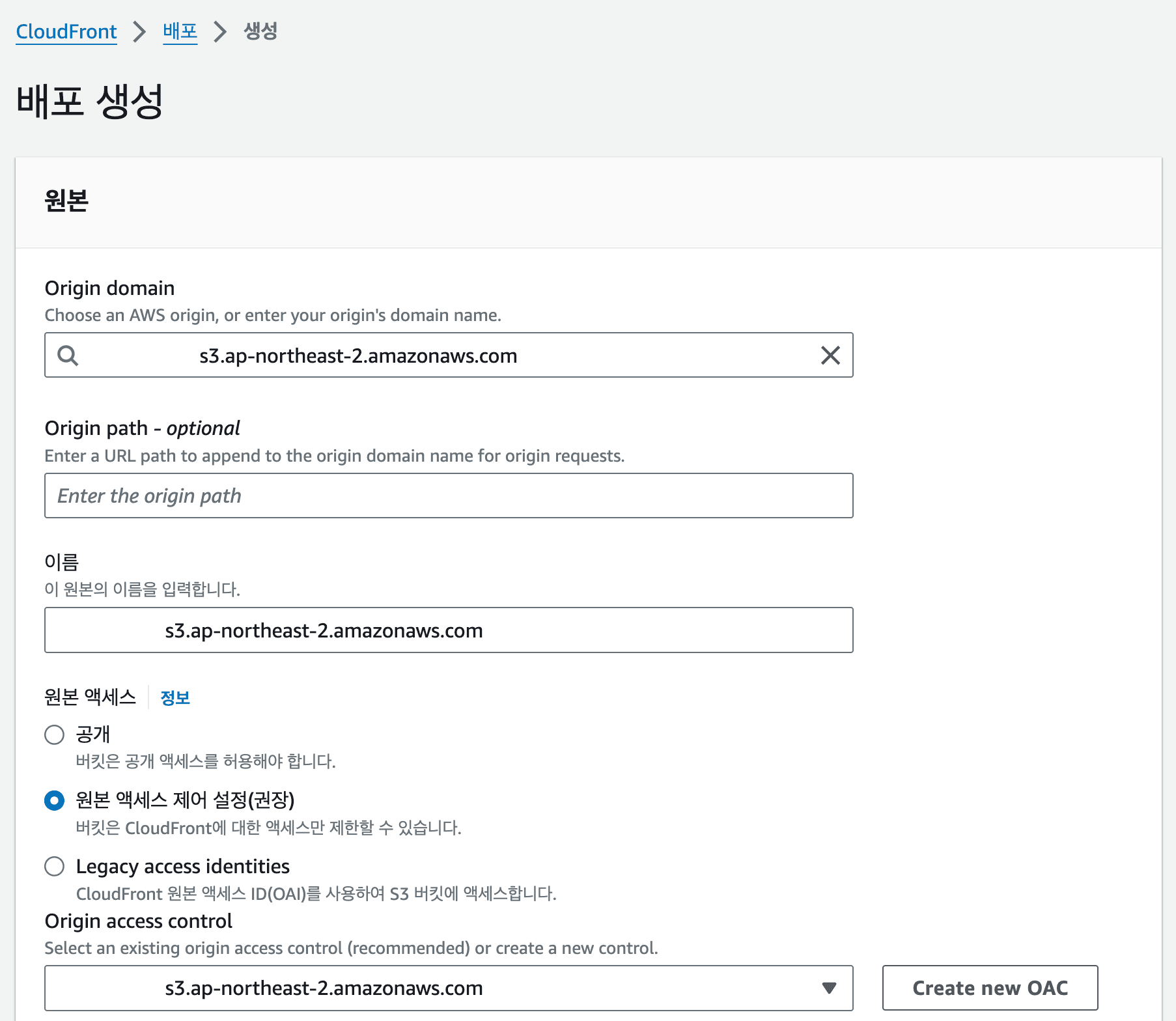 또한 보안을 위해 OAC(Origin Access Control)를 설정했습니다.